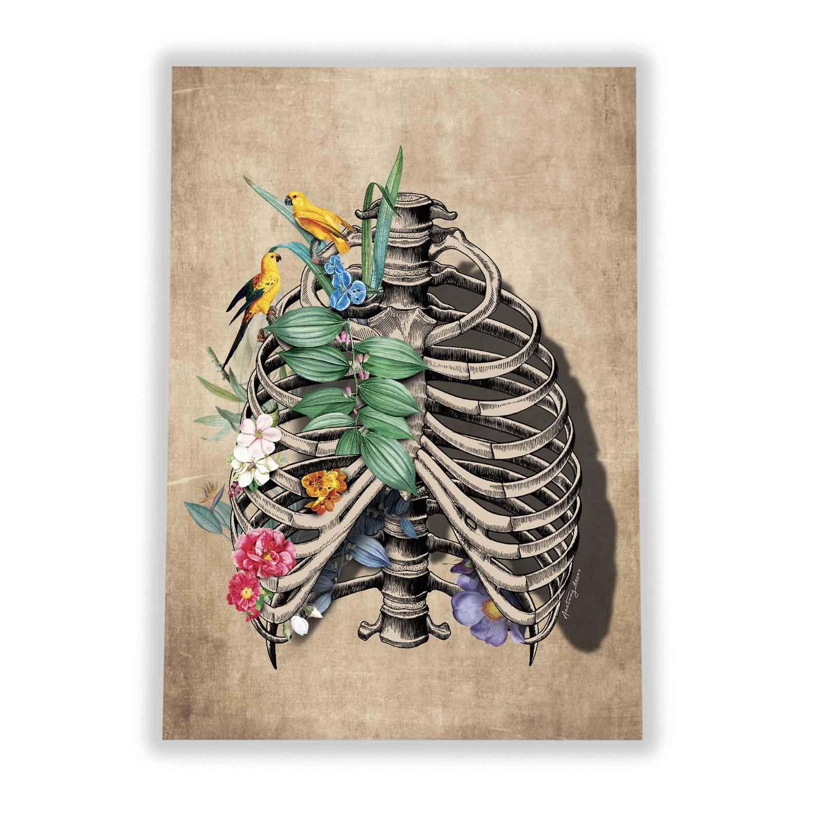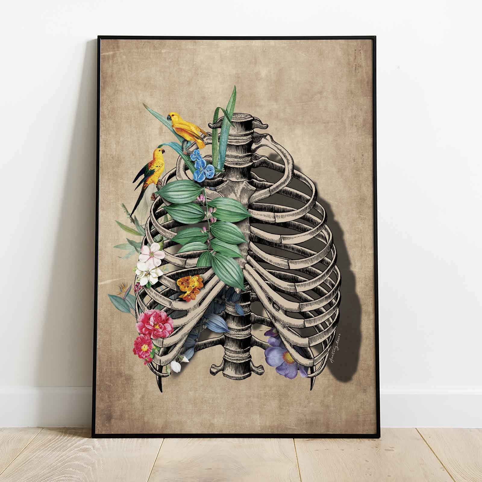 Plakat Klatka Piersiowa z Kwiatami na Tle Płótna
