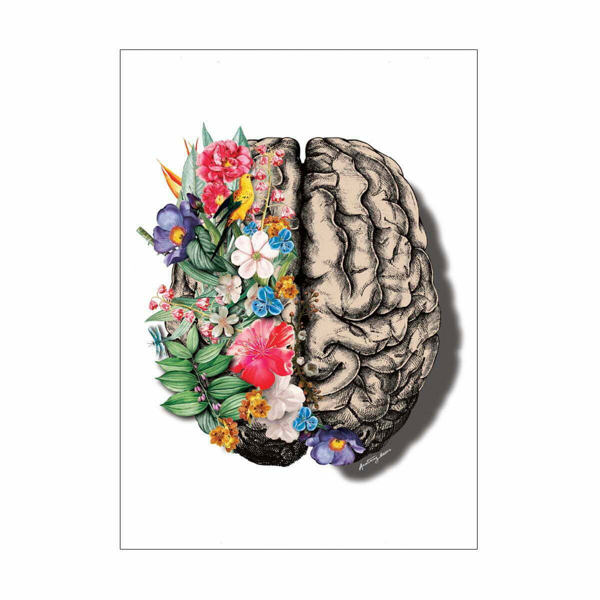 Plakat Mózg z Kwiatami na Białym Tle