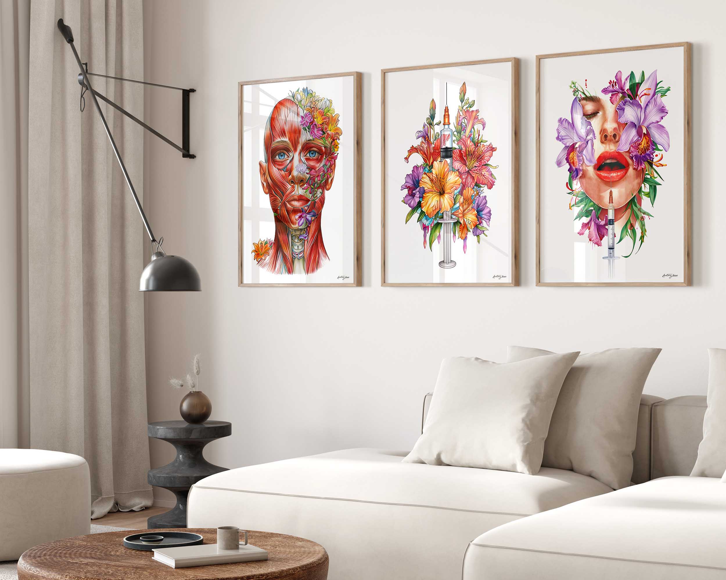Motyw kwiaty to niezwykła kolekcja powstała z połączenie anatomii z pięknem przyrody, dzięki czemu staje się ona nie tylko kolorowa, ale jeszcze bardziej atrakcyjna. Plakaty anatomii w kwiatach to doskonały element dekoracji wnętrza, który wzbogaci każde pomieszczenie i nada mu niepowtarzalnego charakteru.