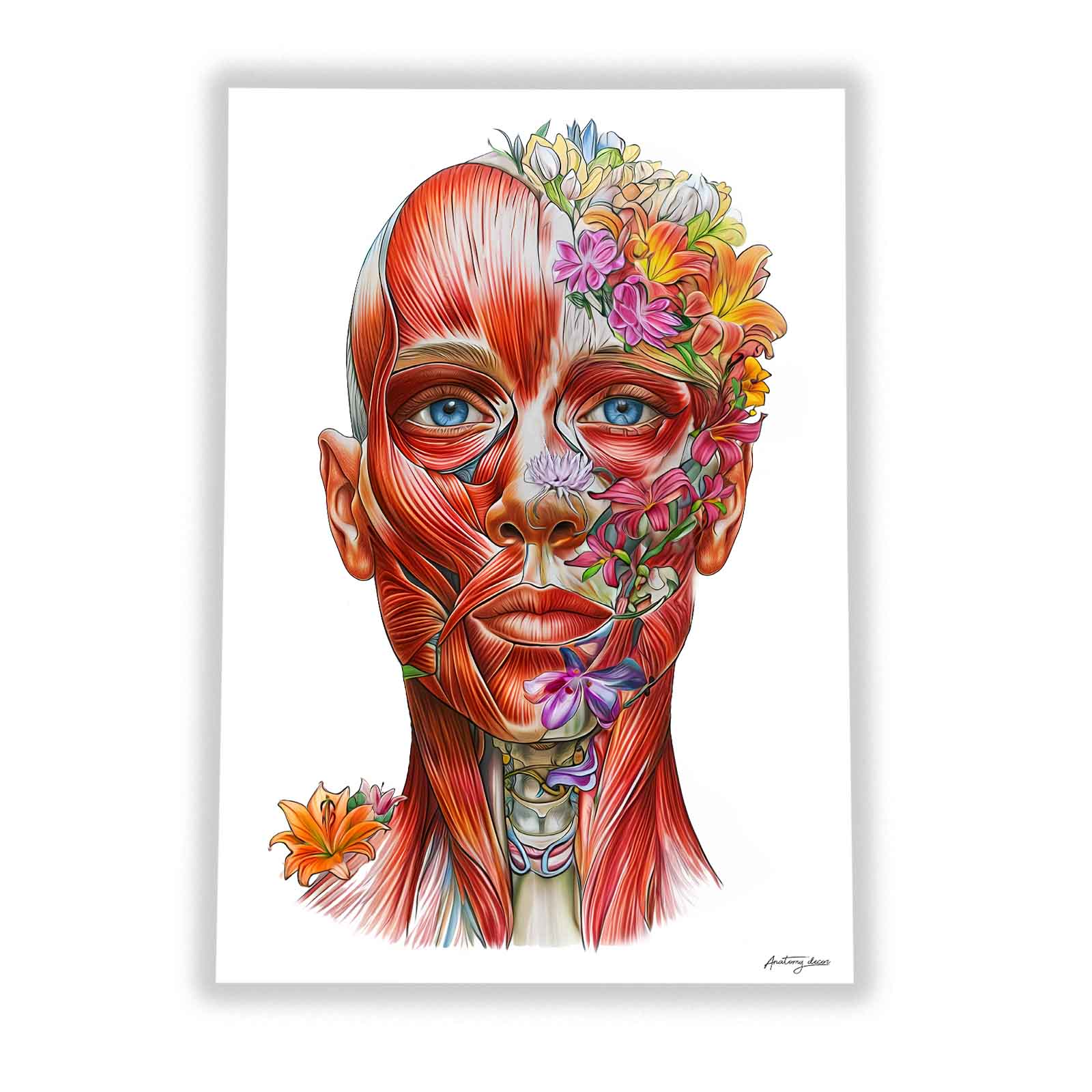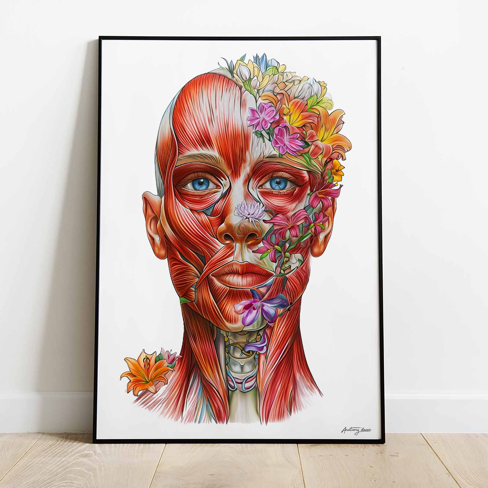 Plakat Mięśnie Twarzy z Kwiatami na Białym Tle