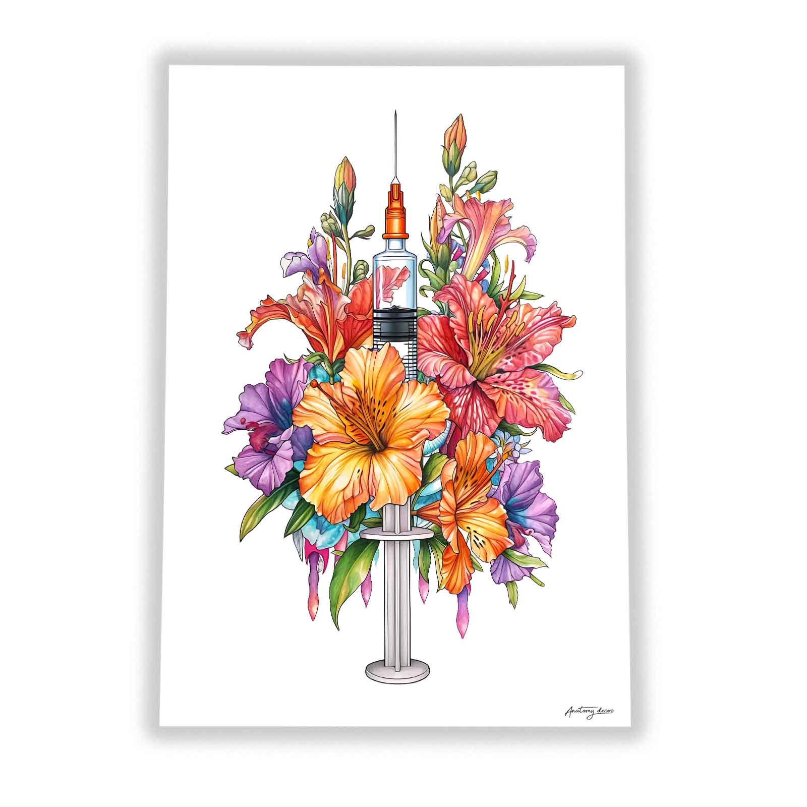 Plakat Strzykawka z Kwiatami na Białym Tle III