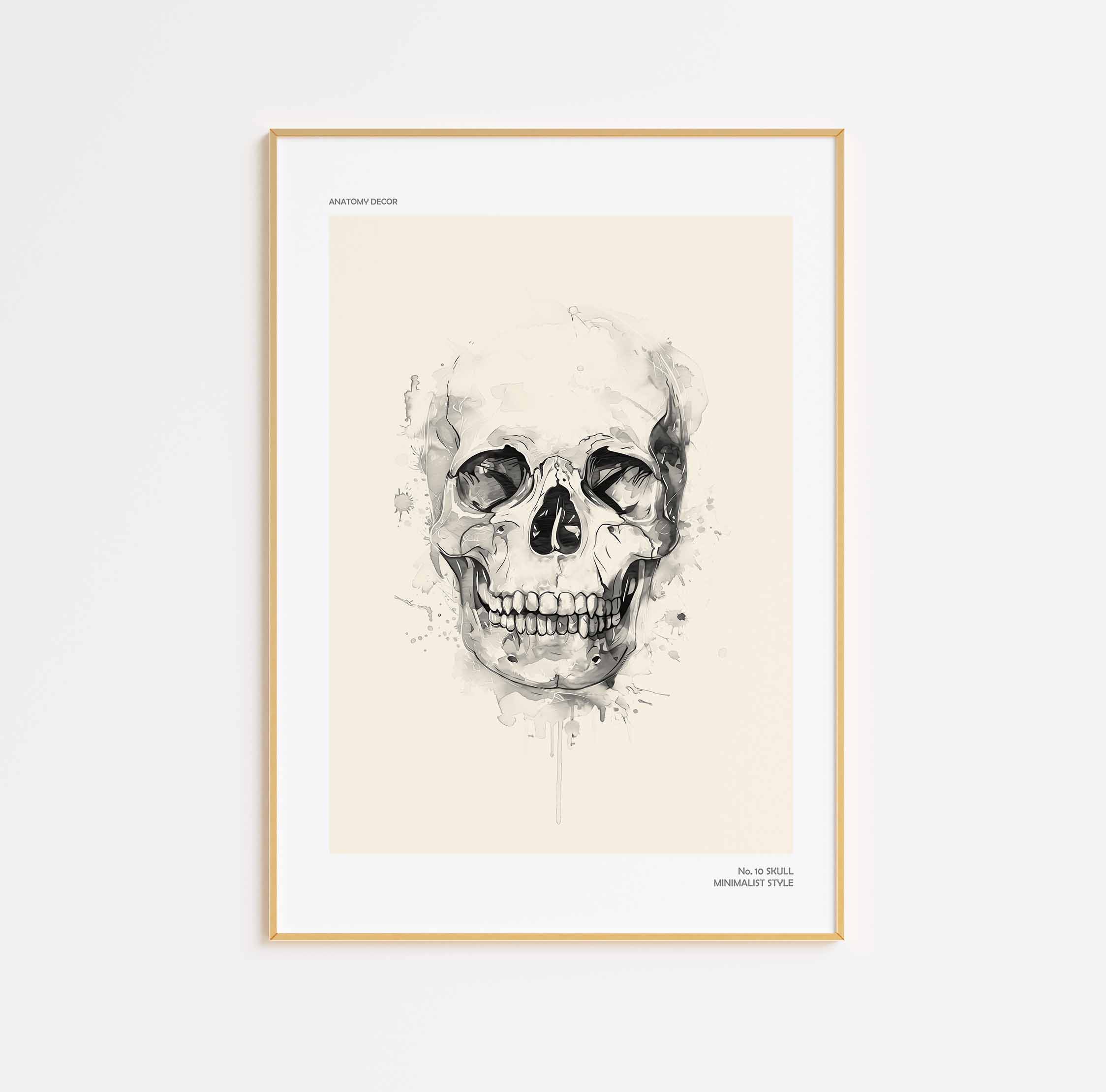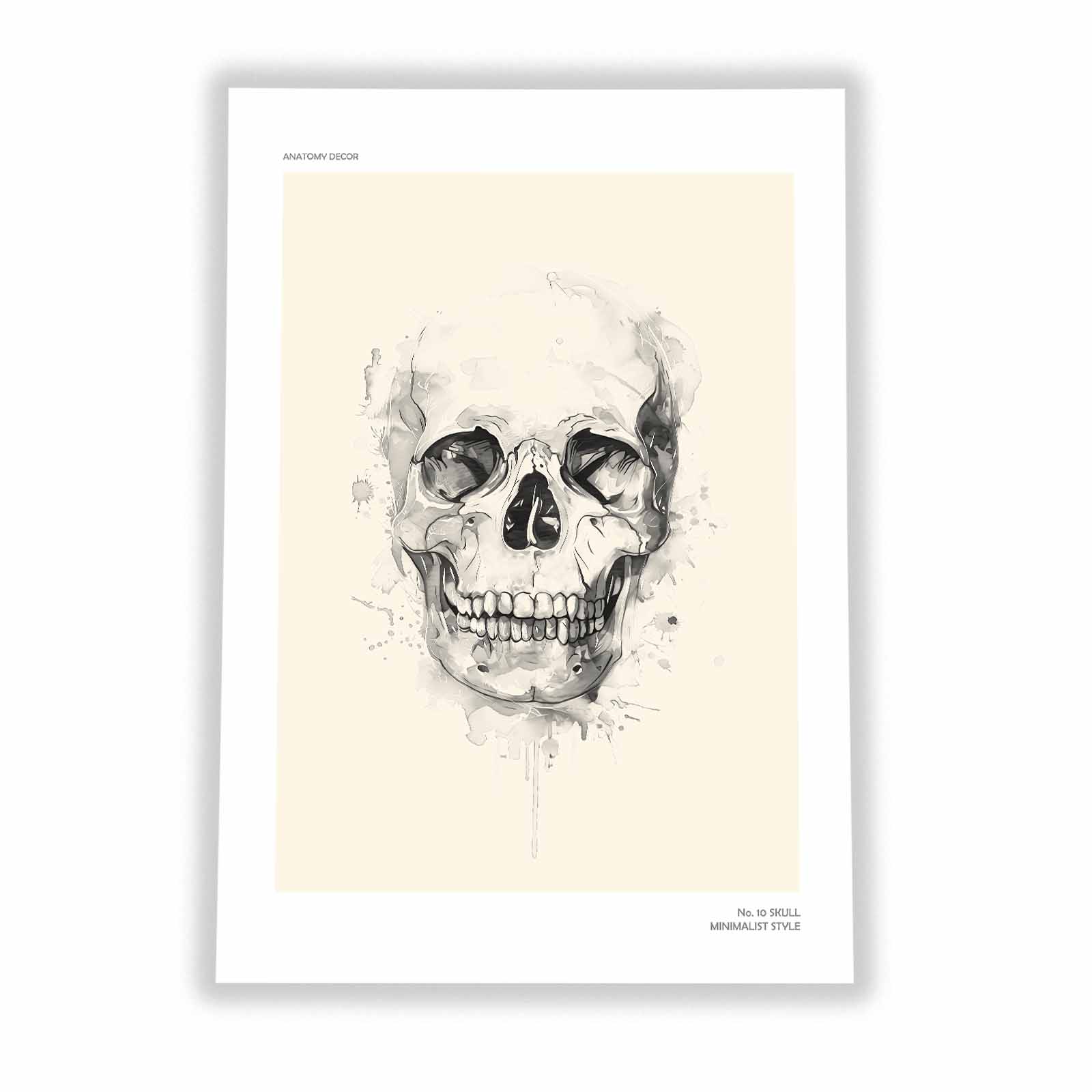 Plakat przedstawia czaszkę człowieka w minimalistycznym stylu, z motywem passe-partout. Seria plakatów w stylu minimalistycznym to propozycja dla osób, które szukają prostoty, ale nie rezygnują z elegancji. Plakaty z powodzeniem wpasują się w każde wnętrze, wprowadzając do niego element nowoczesnej sztuki. Jasnobeżowa baza tła stanowi doskonałą oprawę dla minimalistycznych grafik, wprowadzając harmonię i spokój do medycznej przestrzeni.