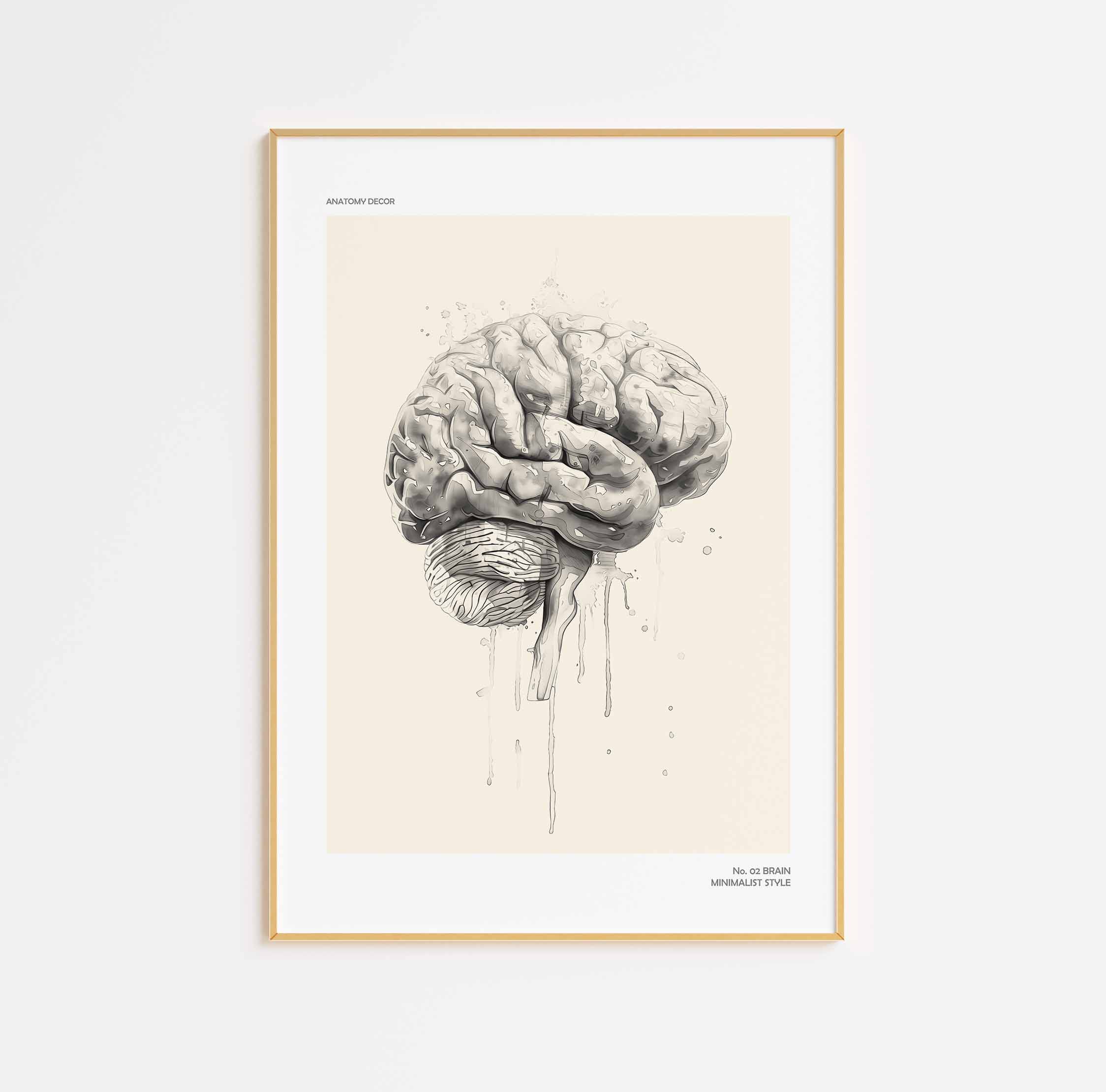Plakat przedstawia mózg w minimalistycznym stylu, z motywem passe-partout. Seria plakatów w stylu minimalistycznym to propozycja dla osób, które szukają prostoty, ale nie rezygnują z elegancji. Plakaty z powodzeniem wpasują się w każde wnętrze, wprowadzając do niego element nowoczesnej sztuki. Jasnobeżowa baza tła stanowi doskonałą oprawę dla minimalistycznych grafik, wprowadzając harmonię i spokój do medycznej przestrzeni.