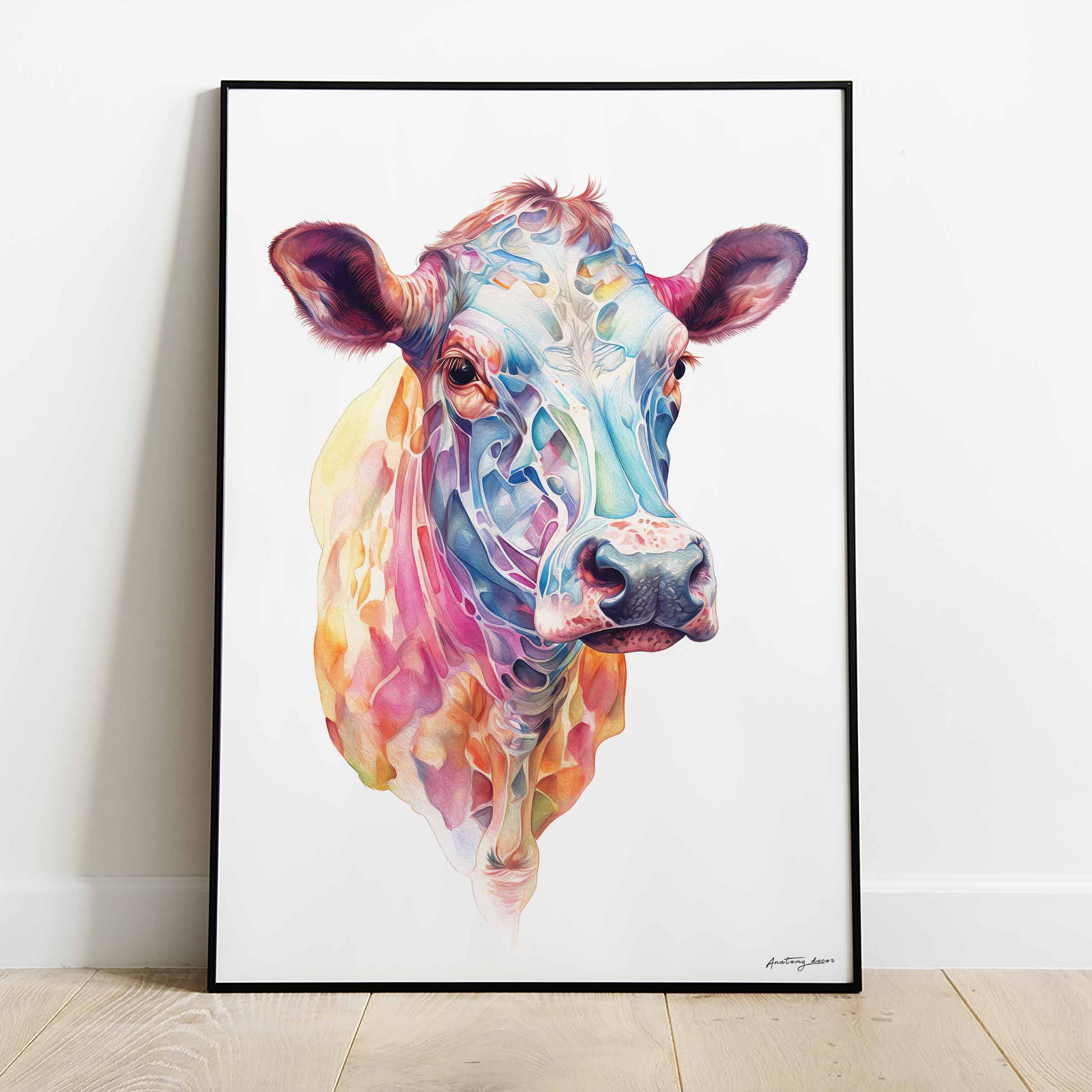 Plakat Krowa w Kolorach na Białym Tle