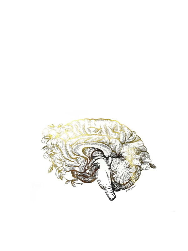 Plakat Złoty Mózg z Kwiatami na Białym Tle